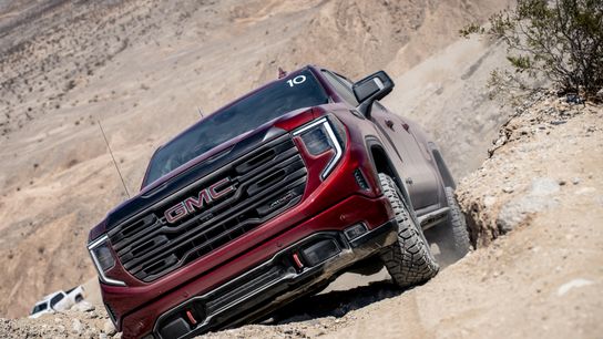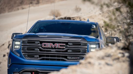 The 2022 GMC Sierra 1500 AT4X comes equipped with both Off-Road and Terrain drive modes. Much like the 2022 GMC Hummer EV, the GMC’s Off-Road drive mode is intended for high-speed off-road driving, whereas its Terrain drive mode is ideal for slow and technical driving. Both drive modes remove some of the electronic nannies, in addition to adapting throttle input, transmission shift strategy, and steering feel. The Terrain drive mode takes things a bit further and allows for “one-pedal driving," meaning that the truck manages the braking, allowing the driver to focus on steering and throttle input. You will find Terrain mode to be most effective when crawling up or down hills and over rocks. Usable in high or low range, the Terrain drive mode works as a sort of faux low range by dragging the friction brakes. This allows for great control going down hills, and takes a large amount of throttle input to begin moving, effectively damping out sudden and accidental power commands (aka: throttle jabs). The new Terrain drive mode effectively makes hill descent control obsolete, however the Sierra 1500 AT4X is still equipped with this function as well.