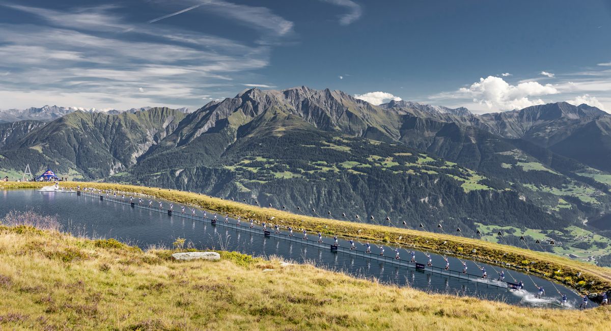 Red Bull athlete Jamie Huser has redefined the limits of wakeboarding by setting a new world record in the Swiss Alps, riding a 140-meter rail floating on Lake Falerin at 2,000 meters above sea level. The 21-year-old Swiss rider finally conquered the challenge on his 113th attempt, gliding the entire length at a precise speed of 34 km/h. Built from 24 floating metal segments, the rail was nearly ten times longer than the plastic rails typically used in competition, demanding extraordinary balance, strength, and persistence.