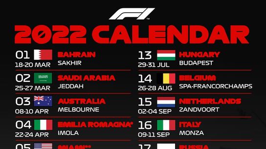 Formula 1 announces 2022 Race Calendar