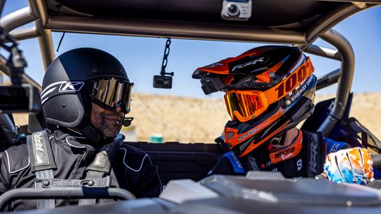 At the wheel, piloting a series of extreme joy rides in the Polaris RZR Pro R, is five-time Polaris UTV off-road racing champion RJ Anderson who you have seen lately jumping a freeway in Long Beach and tearing up the Mammoth Mountain Motocross course.