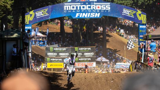 The 2023 Pro Motocross Championship, sanctioned by AMA Pro Racing, made its final appearance on the West Coast on Saturday with its annual visit to the Pacific Northwest and the scenic landscape of Washougal MX Park. Abundant sunshine and temperatures in the mid-80’s provided ideal conditions for the MotoSport.com Washougal National, presented by Peterson CAT, as the perfect season by Team Honda HRC’s Jett Lawrence in his first 450 Class campaign continued with another assertive performance from the young Australian for his eighth straight overall win and 15th and 16th moto victories. In the 250 Class, rookie Haiden Deegan enjoyed the best outing of his young career with an impressive effort that saw the Monster Energy Yamaha Star Racing rider go 1-1 for the first time to tighten up the championship battle with his second win of the season.