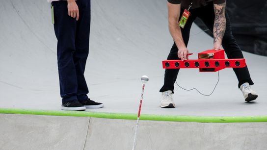 “The devices are portable,” said Bishop. “It allows me to take the device into an urban environment to set up and skate, rather than constantly needing to be in a controlled environment. A few months ago, I was skating and had the police called on me. When they showed up to kick us out, they were so curious about the device and my ability to skate being blind. They said to me, ‘That’s awesome, but you still have to go.’ It was a great feeling for me as a skater to still have the ability to get the police called on you. As a skater you have to learn and adjust. I am just like anyone else who skates. I still have to come to a park and learn the course just like everyone else. The muscle memory of skating doesn’t leave you, you just have to adapt to learn how to use it again.”