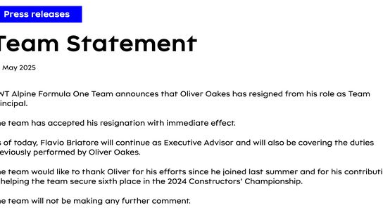 A statement from the team read, “BWT Alpine Formula One Team announces that Oliver Oakes has resigned from his role as Team Principal. The team has accepted his resignation with immediate effect. The team would like to thank Oliver for his efforts since he joined last summer and for his contribution in helping the team secure sixth place in the 2024 Constructors’ Championship. The team will not be making any further comment.”