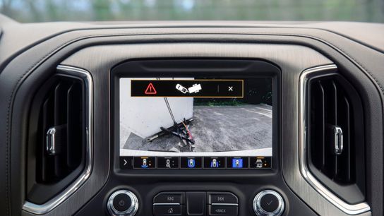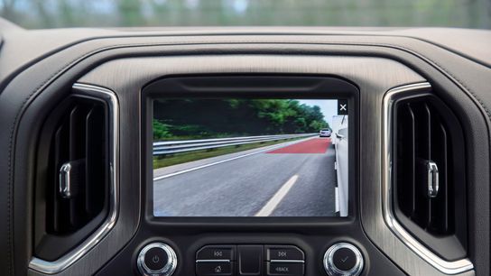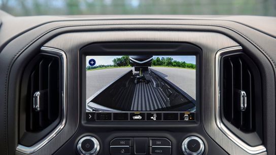 Rear Trailer View now features guidelines and Trailer-Angle Indicator: Rear Trailer View has been enhanced to include guidelines that assist when backing a trailer into place and a Trailer-Angle Indicator to show the relationship between the truck and compatible trailer. Rear Trailer View requires the customer-installed available GM auxiliary accessory camera.