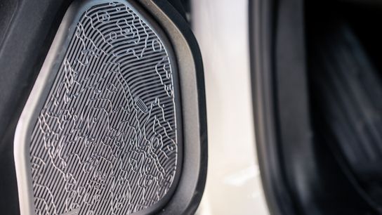 It’s expressed in a topographical map of the Sea of Tranquility (Mare Tranquillitatis) on the door speakers and also makes its way onto the center infotainment display as a backdrop for some of the drive mode screens. The dead pedal has a large lunar boot print molded into it, and there are several small boot print Easter eggs sprinkled through the cabin. It’s an interesting, if a somewhat indulgent, quirk.