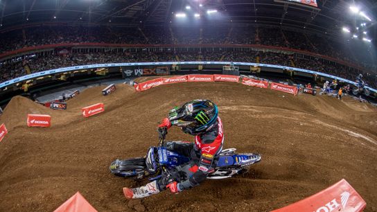 In the SX2 category McElrath, who finished third in his heat race, took the overall victory for Rick Ware Racing and leads the championship standings by a single point after going fourth, third, fifth in the night’s three GP races, highlighting the importance of consistency in the World Supercross Championship’s main event format.
