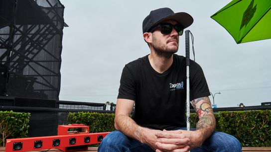 “Around the age of 30 I started to skate again,” said Bishop. “I got a job in Vegas at a placed called Sport Social. We teach kids who are on spectrum in a variety of things including skateboarding. I started back to skating using a beeper box as an audible marker for me to hear the direction I needed to go. I put out a video of me skating with it and Zappos and Not Impossible Labs saw it and reached out to me saying ‘We can do better.”