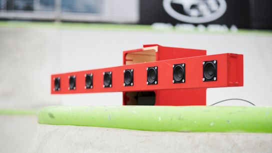 “The devices are portable,” said Bishop. “It allows me to take the device into an urban environment to set up and skate, rather than constantly needing to be in a controlled environment. A few months ago, I was skating and had the police called on me. When they showed up to kick us out, they were so curious about the device and my ability to skate being blind. They said to me, ‘That’s awesome, but you still have to go.’ It was a great feeling for me as a skater to still have the ability to get the police called on you. As a skater you have to learn and adjust. I am just like anyone else who skates. I still have to come to a park and learn the course just like everyone else. The muscle memory of skating doesn’t leave you, you just have to adapt to learn how to use it again.”