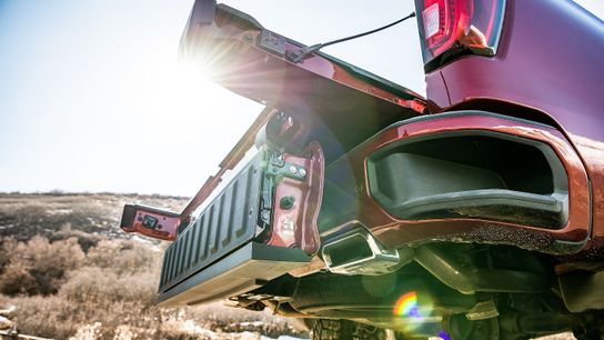 The MultiPro tailgate consists of an upper and lower section with six different configurations that help with ingress and egress, the ability to reach into the box, and/or handling longer loads. It’s standard on the AT4, and having proved itself to us as truly useful on other Sierras, is perhaps the biggest must-have pickup feature we’ve seen in years.