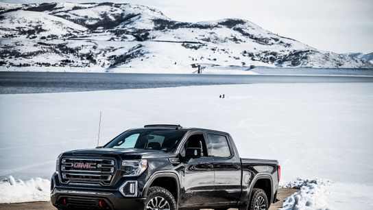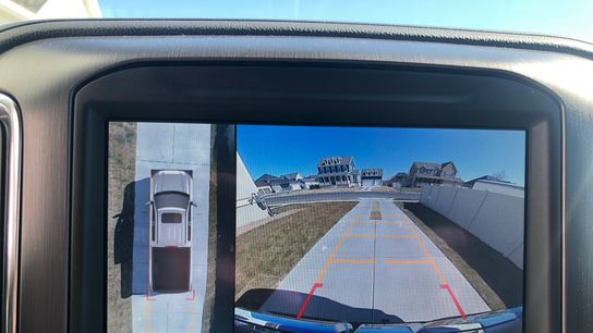 Those shoppers will find that the Sierra AT4 crew cab starts at $54,695—just $1,500 shy of a Denali. My rather loaded test truck clocked in at a hefty $65,355. Among the checked option boxes on the truck we drove were the $4940 Off-Road Performance package, which brings the upgrade 6.2-liter V-8 and its 435 hp and 469 lb-ft of torque (the standard 5.3-liter V-8 makes 355 and 383), a 10-speed automatic (up from eight speeds), a cat-back exhaust, and a performance air intake. Our truck also had the AT4 Premium ($3,100), Technology ($1,875), and Driver Alert II ($745) packages, which added an 8.0-inch head-up display, a 360-surround camera that includes the ability to see it all.