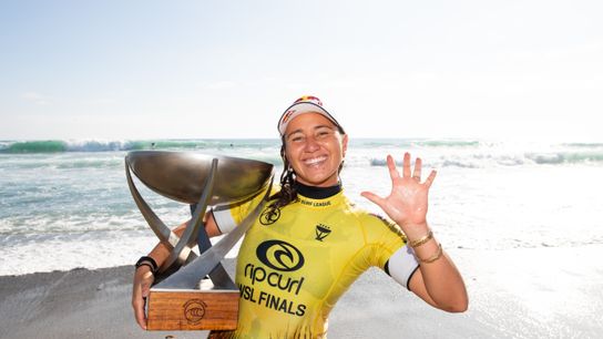SAN CLEMENTE, CALIFORNIA, USA - SEPTEMBER 14: Four-time WSL Champion Carissa Moore of Hawaii after surfing in the Title Match of the Rip Curl WSL Finals on September 14, 2021 at Lower Trestles, San Clemente, California. (Photo by Pat Nolan/World Surf League)