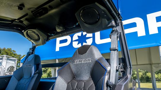 The GENERAL XP 1000 Factory Custom Edition features elite performance of the XP, with its 64-inch sport chassis and best-in-class suspension, 30-inch tires mounted on Pro Armor HEXLR color-matched beadlock wheels, and a new front high-output 11” Pro Armor light bar with stealth black appearance. Inside the cab, the General XP Factory Custom is equipped with an all-new Rockford Fosgate Stage 4 audio system with surround sound speakers and sub-woofer, Enhanced Ride Command features, and a new race-inspired stitched steering wheel and premium bucket seats with color-matched piping and embroidered badging.